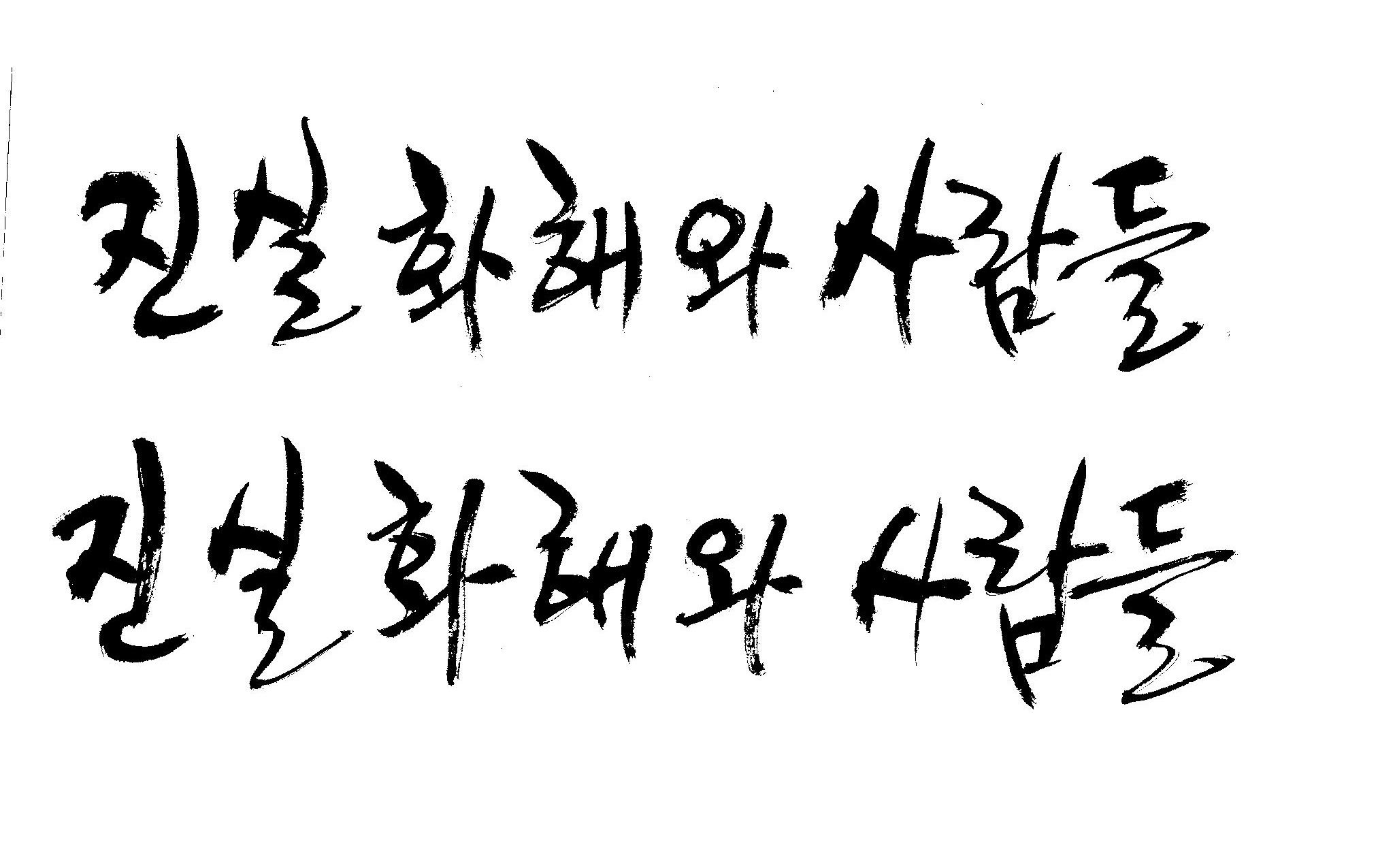 진실화해 와 사람들 캘리 부탁드립니당^^ 김철호 일반 1 7942 2009.01.30 09:50 > > 사보시안에 표지 메인 글짜로 쓸려고 하는데. > > 꼭 좀 부탁드려용^^ > > "진실화해 와 사람들" > > 바쁘신데 이렇게 부탁 드려서 죄송하고요 > > 새해 복 많이 받으세요! > > 감사합니다. >