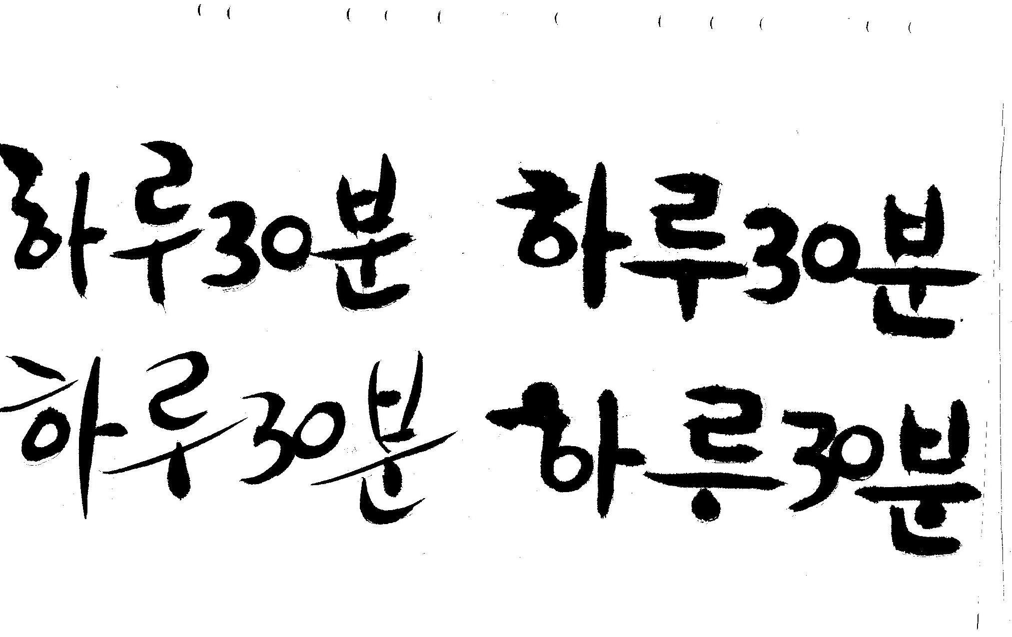 캘리부탁드려요 김철호 일반 0 6395 2008.12.31 13:43 > > 하루30분 <------- 이걸 캘리로 부탁드립니다 > 희망찬 새해 되세요... 스캔이 삐딱하게 되어 손좀 보셔야겠네요..