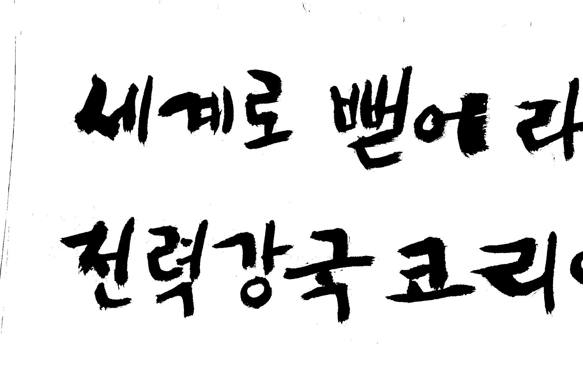캘리 좀 부탁드려요!~ 김철호 일반 1 12713 2008.12.24 12:09 > > > > > > > > > 전력회사 신문광고를 하는데요 캘리로 멋지게 하고픈데 > > > 캘리프로그램으로 아무리 써도 느낌이 안나옵니다 ㅜ.ㅜ > > > 이런걸 부탁한다는 자체가 너무나도 염치없지만 부탁드립니다. > > > > > > 세계로 뻗어라! 전력강국 코리아 > > > > > 보기는 쉬워도 하기는 어려운게 > > 세상 모든 일 일겁니다. > > 그중에 캘리그라피가 그런 것일 겁니다... > > 스캔중에 글꼴이 잘린것은 서로다른글꼴서 편집하시길... > > 글수가 많아서 어쩔 수없네요... > > >